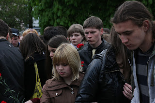 Je peux me tromper, mais il me semble que ces gens sont tout simplement des Moscovites venus dire à leurs morts qu’ils ne les oublient pas. Cette manifestation de solidarité est magnifique!!
