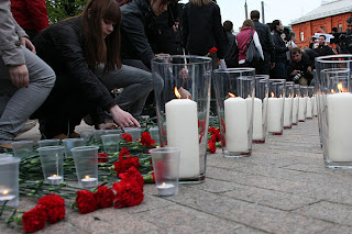 Je peux me tromper, mais il me semble que ces gens sont tout simplement des Moscovites venus dire à leurs morts qu’ils ne les oublient pas. Cette manifestation de solidarité est magnifique!!