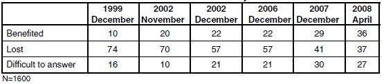 74% des sondés en 1999 ressentait avoir perdu de par ces réformes, ils ne sont plus que 37% aujourd’hui.