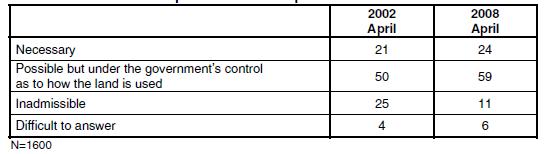 Nécessaire pour 24% des sondés en 2008, ce qui est un peu supérieur à 2002. Néanmoins, 59% pensent que l’état doit au fond rester propriétaire de la terre.
