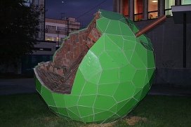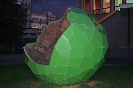 A Perm, le visiteur aura la  surprise de pouvoir trouver d’autres monuments inattendus, qu’il s’agisse par exemple d’une porte en bois à l’entrée de la ville ou d’une grosse pomme verte croquée devant la grande bibliothèque, en plein centre ville.