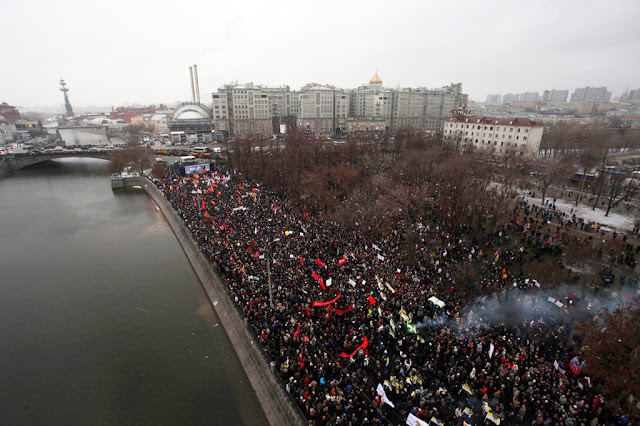 Le lendemain des manifestations a Moscou l’AP a affirmé“qu’un grand meeting anti-Poutine de 120.000 personnes avait eu lieu a Moscou selon les organisateurs”, et qu’un meeting pro-Poutine: “n’a réuni que 20.000 personnes, dont une majorité de professeurs, d’employés municipaux de compagnies d’états ou de militants syndicaux venus via des bus fournis par les employeurs”.