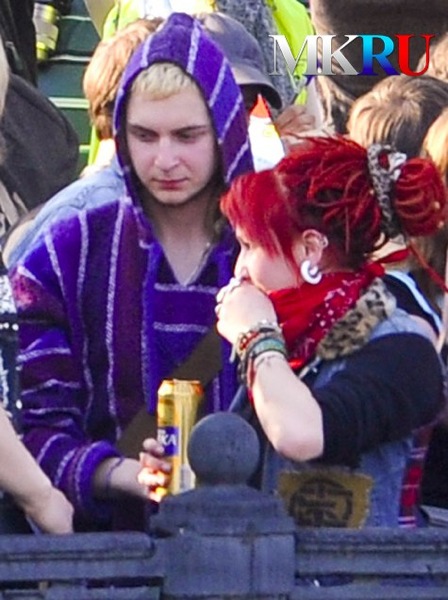 Alors revenons à la réalité : Pendant cette manifestation, il y a eu 30 blessés parmi les forces de l’ordre. Les organes de sécurité ont parlé de “provocations planifiées et organisées” sur le modèle des techniques utilisées par les anarchistes / autonomes lors des manifestations explosives qui accompagnaient les sommets économiques des dernières années, que l’on se souvienne de Gênes en 2001 par exemple. Source: ici et la. Ces procédés sont connus, percée du cordon de police de ligne de police, puis jets de produits explosifs (bombes incendiaires, cocktails Molotov), utilisation des barrières de sécurité, et hampes de drapeaux pour attaquer et frapper les policiers, dissimulation de sprays au gaz ou au poivre dissimulés dans les canettes de coca cola, kvas ou bière et enfin, jets de pierre (comme notre jolie et jeune brune), pierres apportées sur place pour l’occasion a des fins évidemment malveillantes.