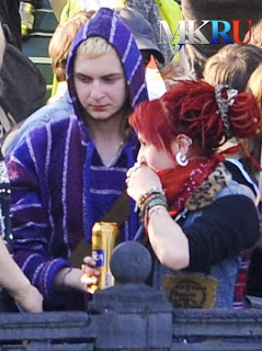 Pourtant, un célèbre blogueur russe du nom de Zyalt était sur place (on peut voir ses cheveux bouclés dans le coin inférieur droit de la photo ci dessus). On ne peut vraiment pas suspecter Zyalt d’être affilié au pouvoir russe ni à la police, voila néanmoins ce qu’ilécrivait après avoir assisté à la scène: “К слову о театре. Эта девушка легла на асфальт и, на радость фотокоррам, начала биться в истерике. В принципе, никто ее не трогал. Зато на фотографиях все будут думать, какие милиционеры жестокие, девушку избили”.