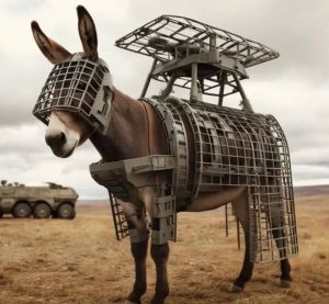 Présenté sans précédent dans le monde, le kit complet pour la protection contre les drones FPV, sur âne. Le kit comprend également des emplacements de fixation pour et permet de placer des Mines antichars TM-62, ce qui permet d’utiliser l’âne comme kamikaze lors de l’assaut des champs de bois et des positions fortifiées de l’ennemi.