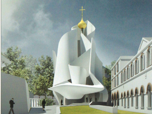Comme l’auteur l’a expliqué, ce Moscou est une utopie, un appel mais aussi un rêve. Il s’agit pour lui de créer des formes idéales, les formes radieuses du futur. C’est la représentation idéalisée d’un empire eurasiatique de la fin des temps, dont le Kremlin serait le cœur sacré, et qui combinerait les traditions religieuses du monde, l’orthodoxie, l’islam et le Bouddhisme. En écoutant ces explications, en regardant ces images du futur, j’ai pensé à l’œuvre du regretté Jean Parvulesco sur “l’empire eurasiatique de la fin“.