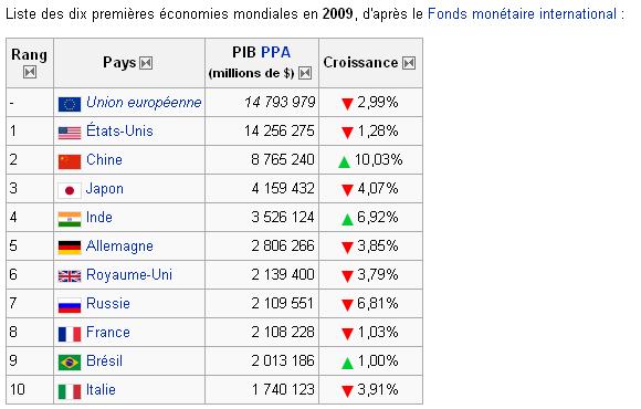 – La taille de l’économie chinoise a doublé à chaque huit ans au cours des trois dernières décennies. Malgré la récession mondiale, les économies chinoises (+6%) et indiennes (+4,5%) continuent de croître.